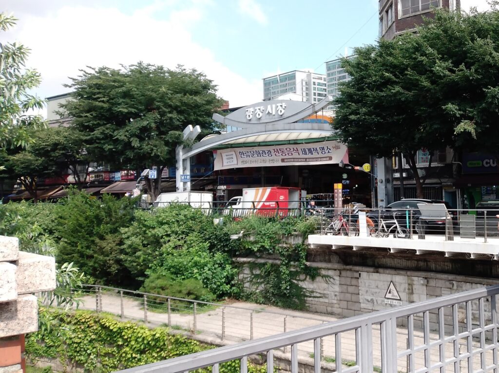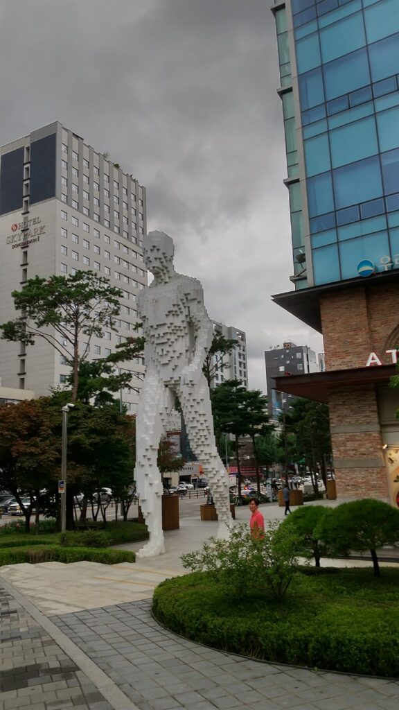 ホテル近くの写真です。東大門DDPにも仁川空港にも人をモチーフにした大きなオブジェがありました。体力限界でホテルに帰って体を休ませて、歩いて広蔵市場に向かいます。