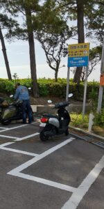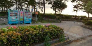 バイク駐輪場は四国水族館を正面に見て左側の角にある自動販売機の裏側に5台無料の駐輪場がありました。バイクは停めるところがなくて困ることが多いですよね。