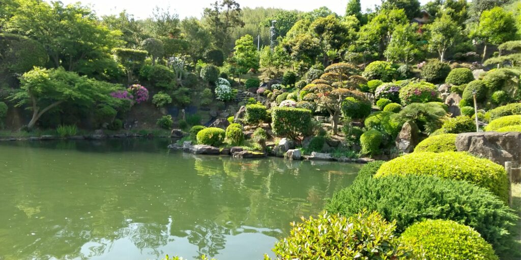 厄除けうたづ大師の郷照寺の厄除け大師堂では天井に美しい彫刻と美しい庭園が見事でした。